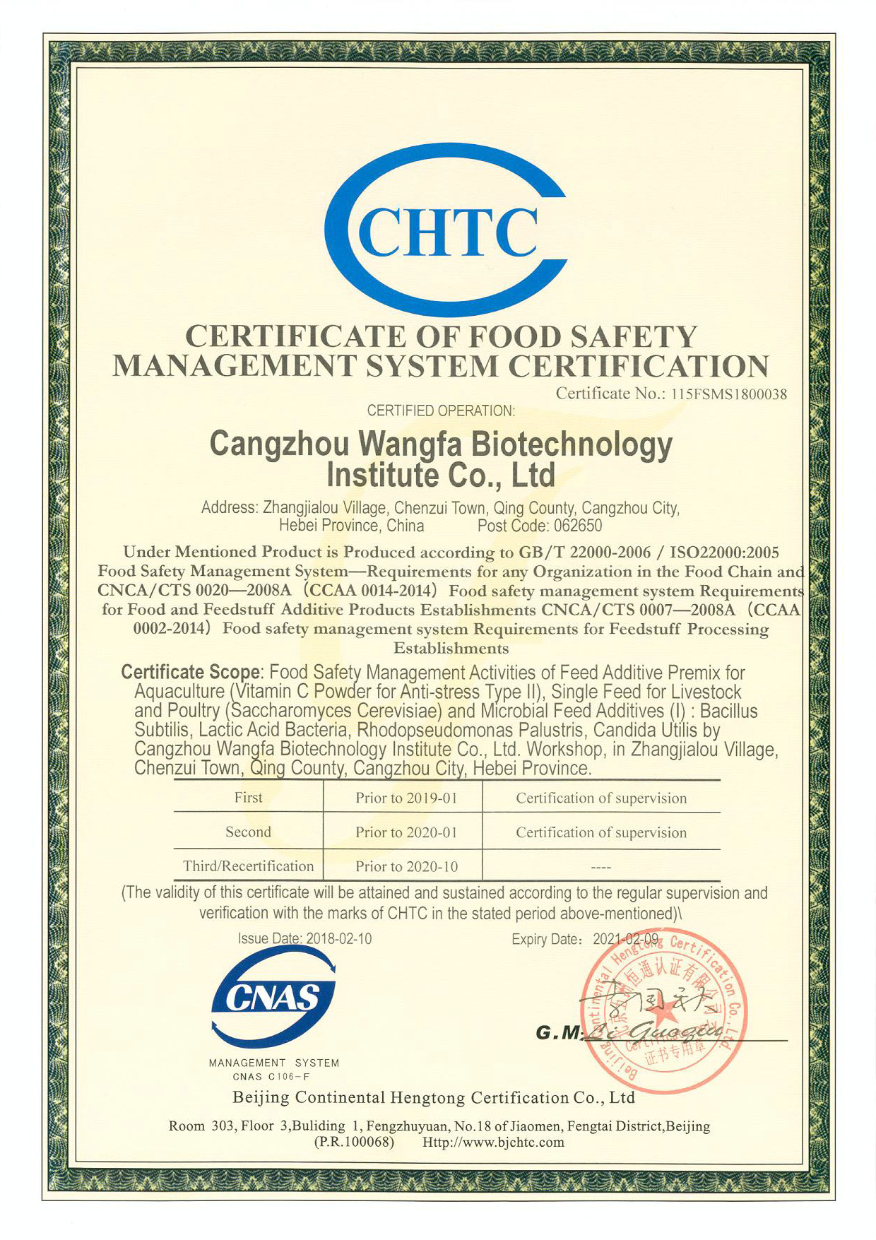 Certification of food safety management system