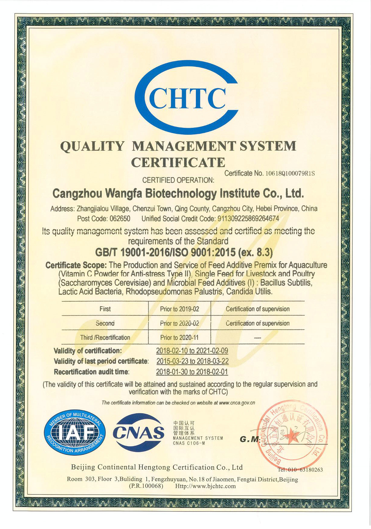The fourth vice chairman of the microbiology branch of Cangzhou Feed Industry Association
