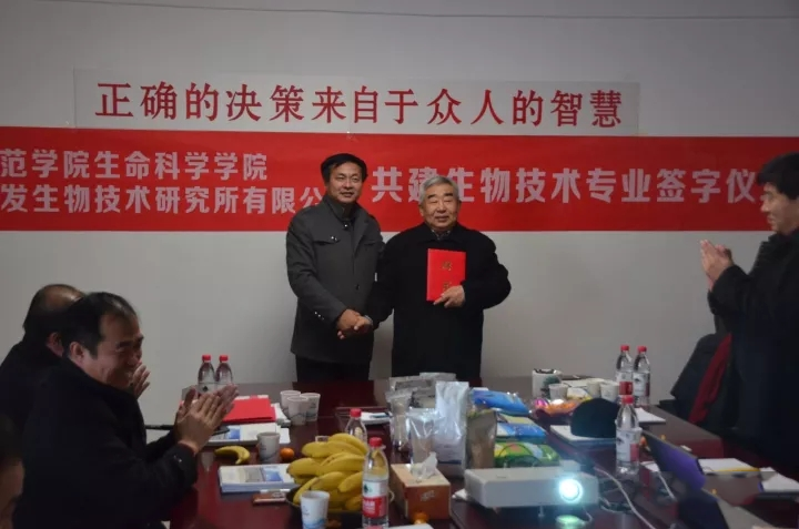 11月18日上午九時,滄州旺發(fā)生物與滄州生命科學(xué)學(xué)院,共建生物技術(shù)專業(yè)簽約儀式在旺發(fā)生物會議室隆重舉行。張連水董事長、張連潤總工程師、劉福春院長,辛智廣書記,王竹承副院長及師生二十余人參加了簽約儀式。在簽約儀式上,生命科學(xué)學(xué)院聘請張連水董事長和張連潤總工程師為生命科學(xué)學(xué)院兼職教授。校企合作共建專業(yè)、共建平臺、共享課程、師資、生產(chǎn)、市場等教育資源,是產(chǎn)學(xué)研融合的新模式,將推進(jìn)校企雙方優(yōu)勢互補(bǔ)、信息共享、互利雙贏。儀式開始前,張連水董事長帶領(lǐng)師生參觀了公司的研發(fā)中心、生產(chǎn)廠區(qū)、實驗基地等,向大家詳細(xì)介紹了微生物產(chǎn)品的生產(chǎn)工藝流程及產(chǎn)品的應(yīng)用領(lǐng)域、發(fā)展前景。